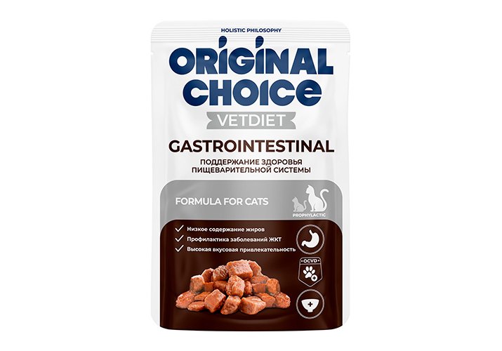 Original Choice Vetdiet Gastrointestinal Ветеринарная диета Ориджинал Чойс диетическое полнорационное питание Паучи для взрослых кошек с чувствительным пищеварением (цена за упаковку) 85г х 14шт