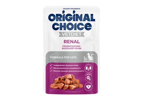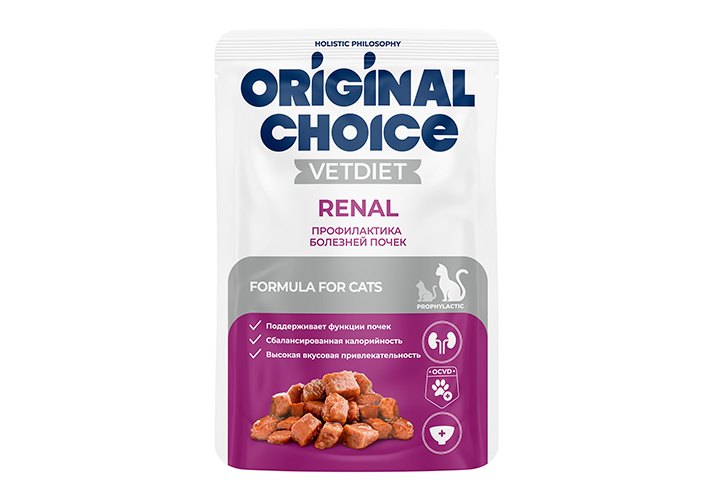 Original Choice Vetdiet Renal Ветеринарная диета Ориджинал Чойс диетическое полнорационное питание Паучи для взрослых кошек Профилактика болезней почек (цена за упаковку) 85г х 14шт