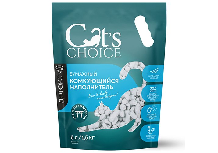 Бумажный комкующийся наполнитель Cat’s choice разработан по инновационной японской технологии из целлюлозы и природных минералов. Наполнитель быстро абсорбирует влагу и блокирует неприятный запах.