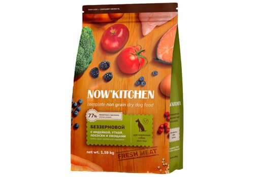 NOW KITCHEN Adult Fresh Grain-free Turkey Duck&Salmon Сухой Беззерновой корм Нау Китчен для взрослых собак 3 вида мяса Индейка Утка Лосось 1,59 кг