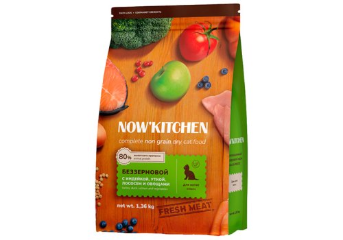 NOW KITCHEN Kitten Fresh Grain-free Turkey Duck&Salmon Сухой Беззерновой корм Нау Китчен для котят Индейка Утка Лосось и овощи 1,36 кг