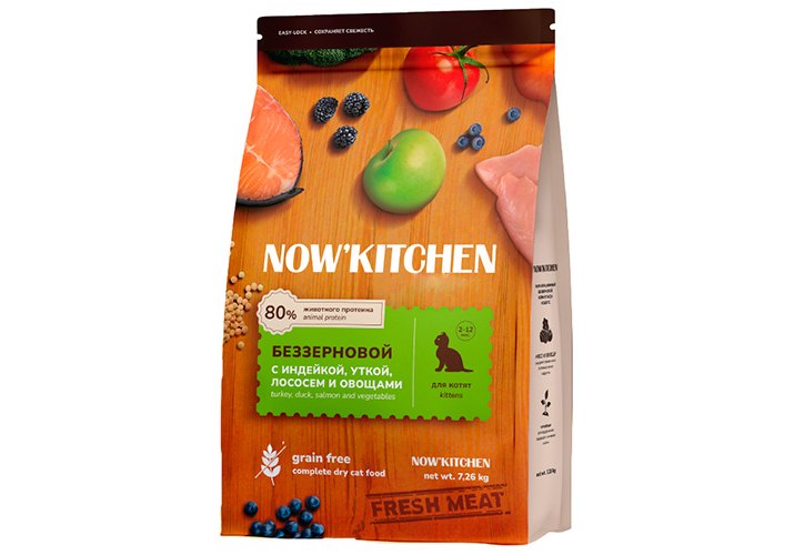 NOW KITCHEN Kitten Fresh Grain-free Turkey Duck&Salmon Сухой Беззерновой корм Нау Китчен для котят Индейка Утка Лосось и овощи 7,26 кг