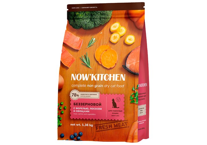 NOW KITCHEN Adult Fresh Grain-free Recipe Trout&Salmon Сухой Беззерновой корм Нау Китчен для взрослых кошек Форель Лосось и овощи 1,36 кг