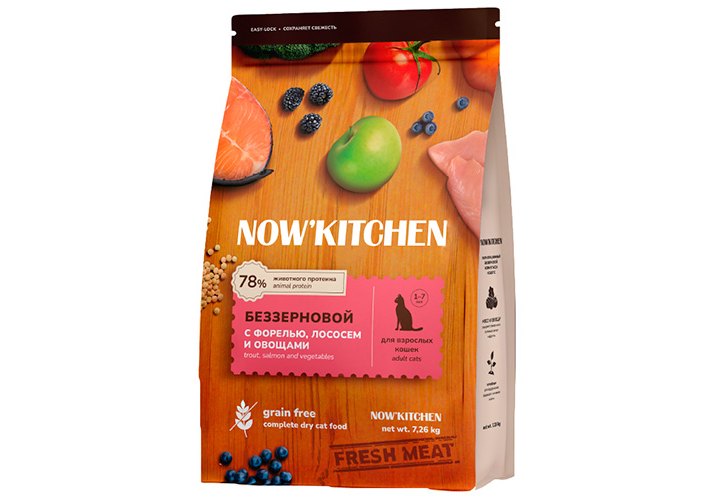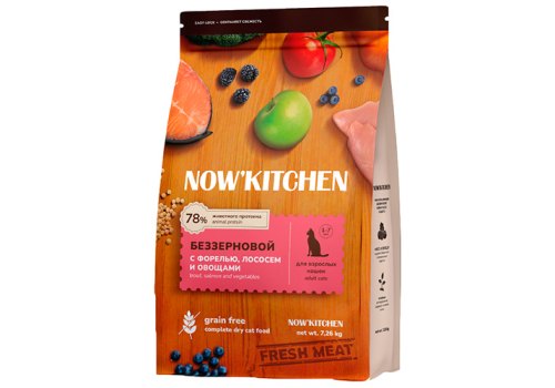 NOW KITCHEN Adult Fresh Grain-free Recipe Trout&Salmon Сухой Беззерновой корм Нау Китчен для взрослых кошек Форель Лосось и овощи 7,26 кг