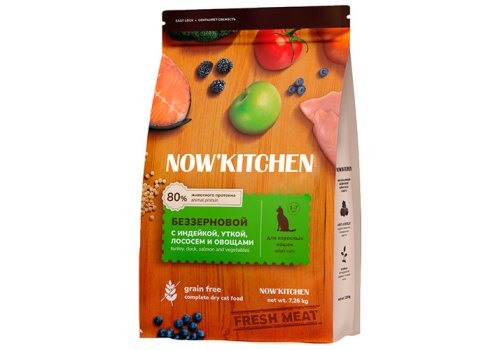 NOW KITCHEN Adult Fresh Grain-free Turkey Duck&Salmon Сухой Беззерновой корм Нау Китчен для взрослых кошек Индейка Утка Лосось и овощи 7,26 кг