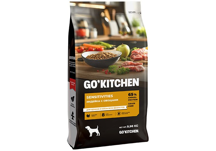 GO'KITCHEN SENSITIVITIES Turkey - беззерновой корм, разработанный специально для собак с чувствительным пищеварением.