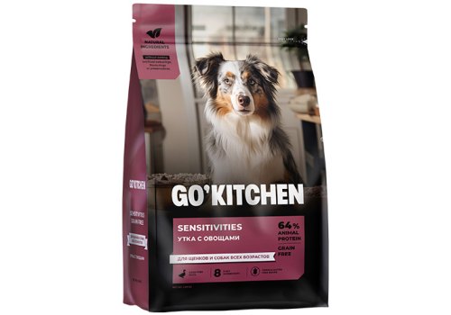 GO KITCHEN Sensitivities Duck Сухой Беззерновой корм Гоу Китчен для Щенков и собак с Чувствительным пищеварением Утка 1,59 кг
