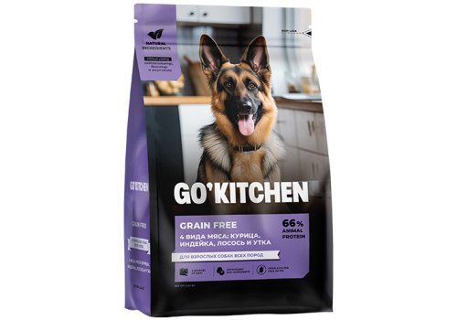 GO'KITCHEN GRAIN FREE ADULT 4 Meat Recipe - идеальное питание для активных собак, нуждающихся в высококачественных источниках энергии и поддержании крепкого здоровья.