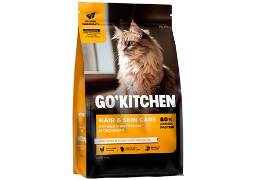 GO KITCHEN Hair+Skin Care Chicken Cухой корм Гоу Китчен для Котят и кошек всех возрастов свежая Курица Фрукты и Овощи 400 г