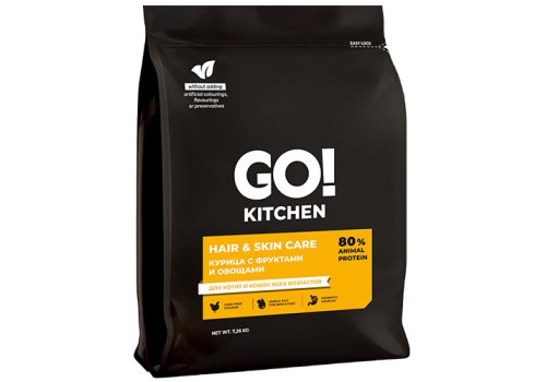 GO KITCHEN Hair+Skin Care Chicken Cухой корм Гоу Китчен для Котят и кошек всех возрастов свежая Курица Фрукты и Овощи 7,26 кг