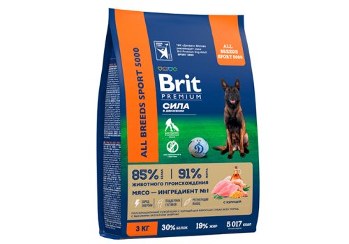 Brit Premium Dog Adult Sport 5000 Полнорационный сухой корм Брит для взрослых собак всех пород с высокими затратами энергии Курица 3 кг