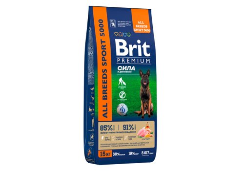 Brit Premium Dog Adult Sport 5000 Полнорационный сухой корм Брит для взрослых собак всех пород с высокими затратами энергии Курица 15 кг