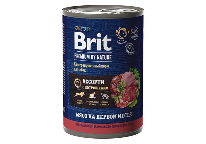Brit Premium by Nature Консервы Брит для взрослых собак всех пород Мясное ассорти с потрошками (цена за упаковку) 410г х 6шт