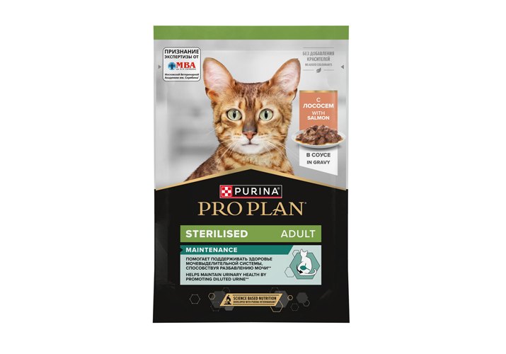 PRO PLAN Sterilised MAINTENANCE Влажный корм Паучи ПРО ПЛАН (Поддержание естественной защиты организма) для взрослых стерилизованных кошек с лососем в соусе (цена за упаковку) 85г х 26шт