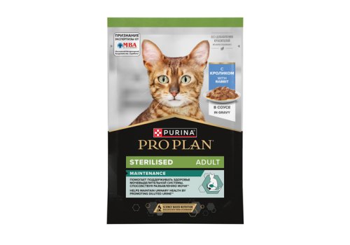 PRO PLAN Sterilised MAINTENANCE Влажный корм Паучи ПРО ПЛАН (Поддержание естественной защиты организма) для взрослых стерилизованных кошек и кастрированных котов с кроликом в соусе (цена за упаковку) 85г х 26шт