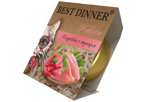 Best Dinner Holistic Консервы Бест Диннер Холистик Стерилизованных кошек Мясные волокна в желе Индейка с Тунцом (цена за упаковку) 75г х 6шт