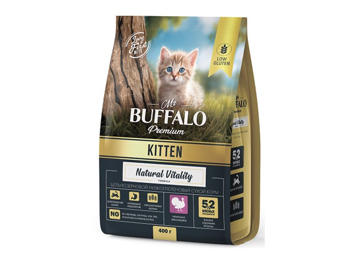 Полнорационный сухой корм для котят от 1 до 12 месяцев Mr.Buffalo Kitten специально разработан для обеспечения потребностей котят, чтобы они получали лучший старт в жизни и росли в полном соответствии со своим потенциалом.