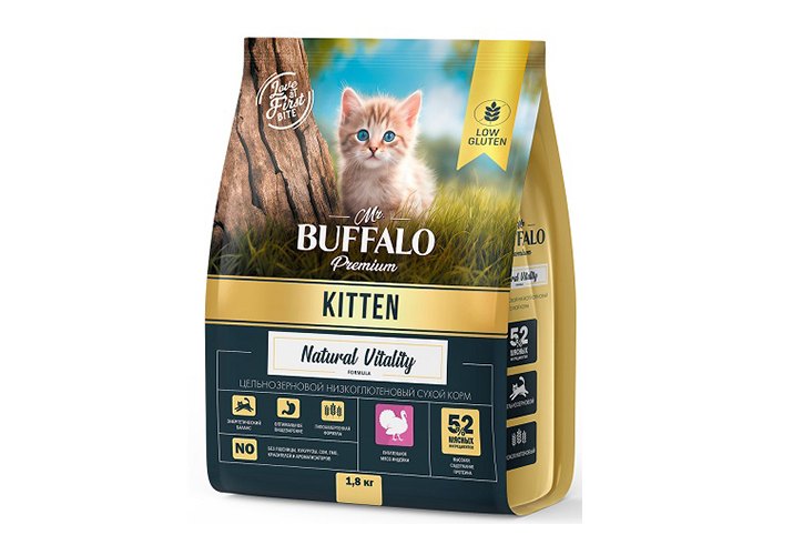 Полнорационный сухой корм для котят от 1 до 12 месяцев Mr.Buffalo Kitten специально разработан для обеспечения потребностей котят, чтобы они получали лучший старт в жизни и росли в полном соответствии со своим потенциалом.