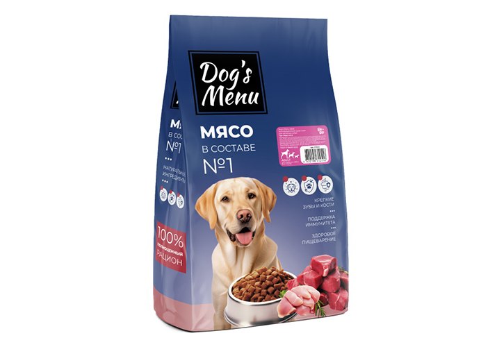 //Dogs menu/Сухой корм для взрослых собак/Со вкусом мясо/Dogs Menu Adult / Сухой корм Догс Меню для взрослых собак Три вида мяса