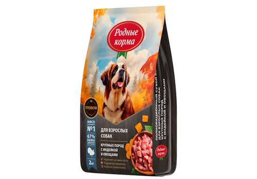 Корм для взрослых собак крупных пород «РОДНЫЕ КОРМА» — это: