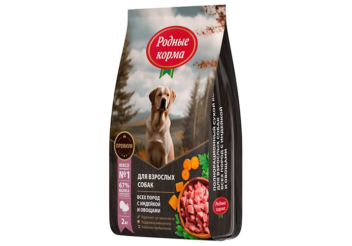 Родные Корма Сухой корм для взрослых собак всех пород с Индейкой и овощами 2 кг
