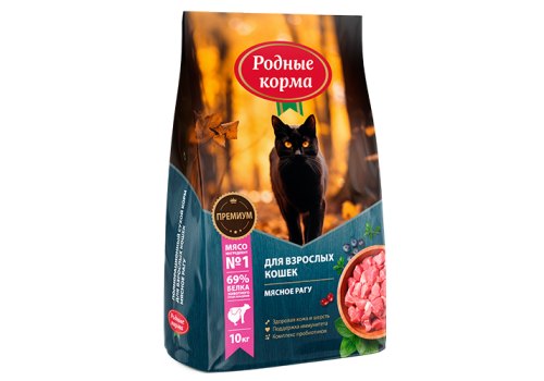 Родные Корма Сухой корм для взрослых кошек Мясное рагу 10 кг