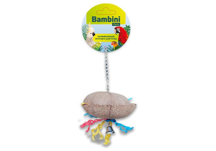 Bambini Pets Игрушка Бамбини Петс для средних и крупных попугаев "Кокосик с колокольчиком" 25 см