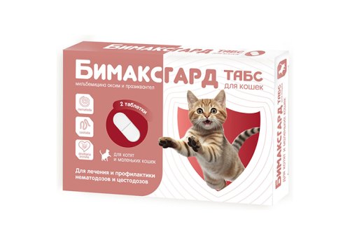 Бимаксгард® ТАБС для кошек содержит действующие вещества: мильбемицина оксим и празиквантел. Для котят и маленьких кошек с содержанием мильбемицина оксима – 4 мг/табл. и празиквантела – 10 мг/табл.