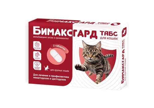Бимаксгард® ТАБС для крупных кошек – современный комбинированный антигельминтный препарат в форме таблеток. Эффективен против широкого спектра нематод и цестод, а также помогает в профилактике дирофиляриоза.