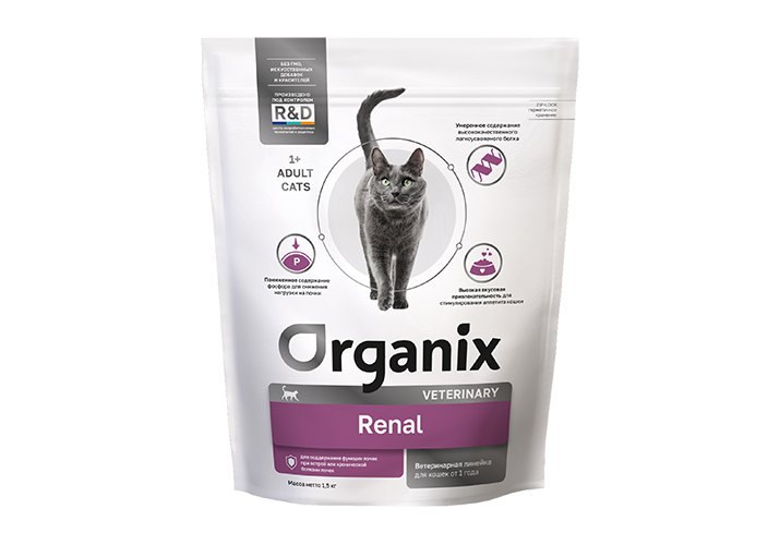 Organix Cat RENAL Сухой корм Органикс для взрослых кошек для Поддержания функции почек при острой или хронической болезни почек 1,5 кг