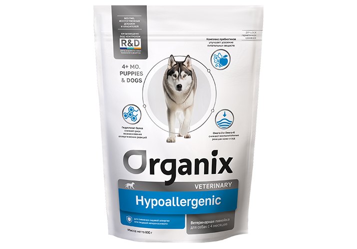 Полнорационный сухой корм Organix Veterinary Hypoallergenic - это диетическое питание для собак для снижения пищевой непереносимости ингредиентов и питательных веществ.