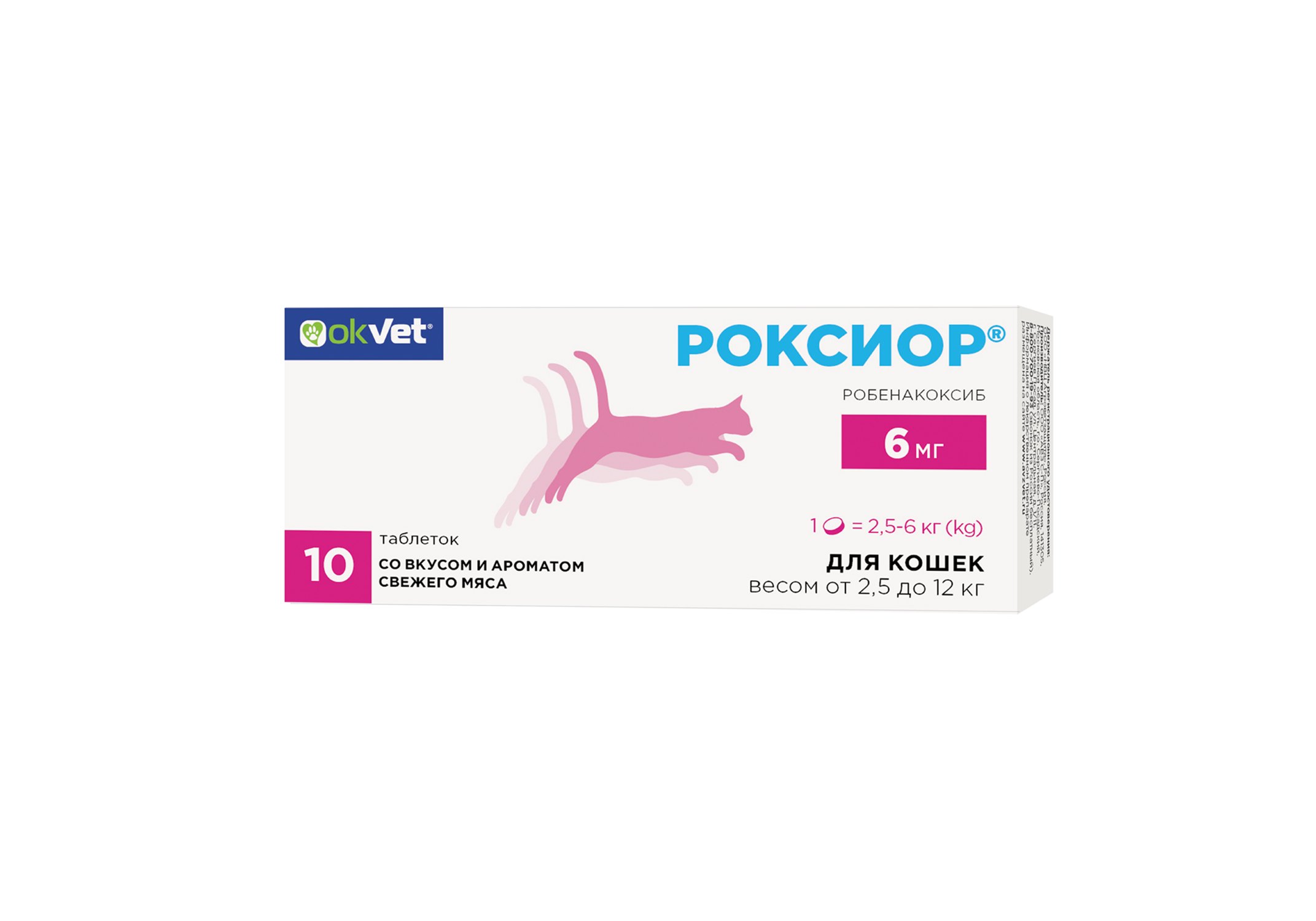 Okvet Таблетки Оквет РОКСИОР 6 мг для кошек весом от 2,5 до 12 кг нестероидный противовоспалительный препарат со вкусом и ароматом свежего мяса 10 таб