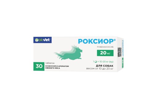Okvet Таблетки Оквет РОКСИОР 20 мг для собак весом от 10 до 20 кг нестероидный противовоспалительный препарат со вкусом и ароматом свежего мяса 30 таб