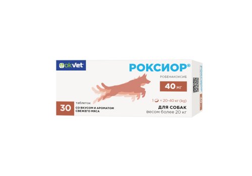 Okvet Таблетки Оквет РОКСИОР 40 мг для собак весом от 20 кг нестероидный противовоспалительный препарат со вкусом и ароматом свежего мяса 30 таб