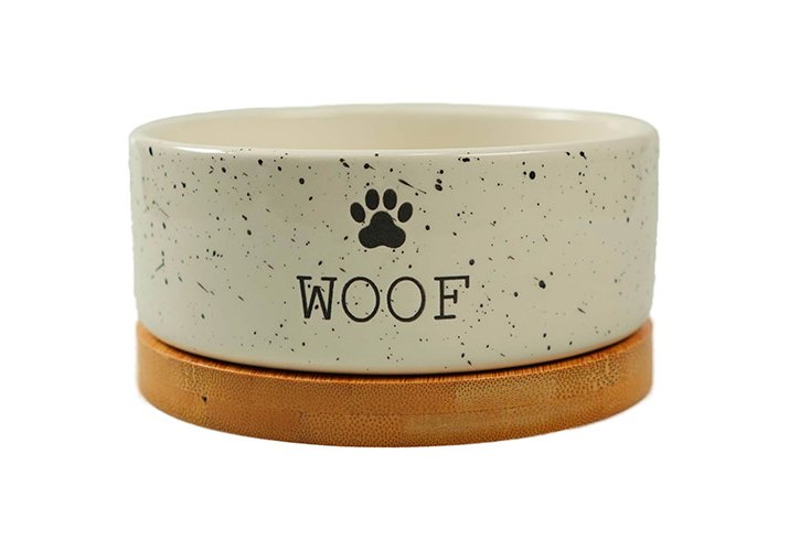 Mr.Kranch Bamboo Woof Миска Мистер Кранч Керамическая белая на бамбуковой подставке 470 мл