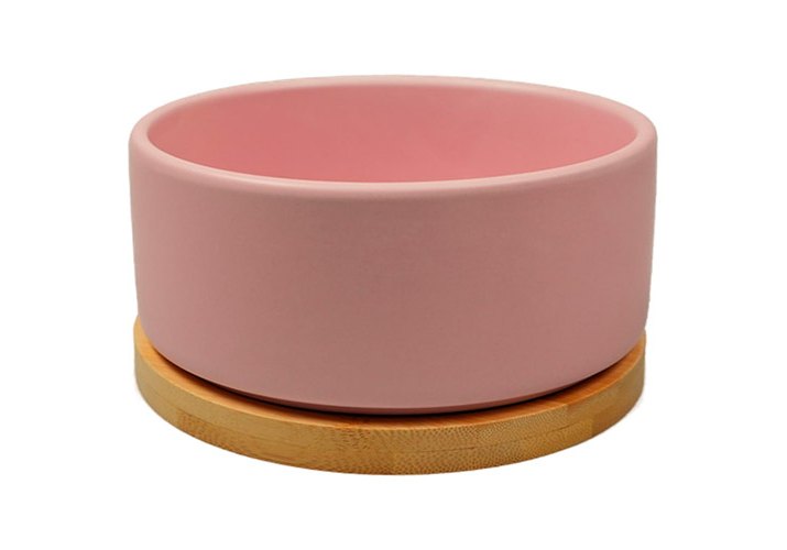 Mr.Kranch Bamboo Миска Мистер Кранч Керамическая розовая на бамбуковой подставке 860 мл