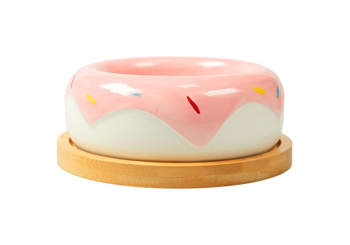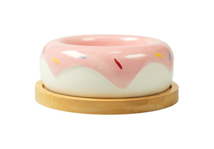 Mr.Kranch Bamboo Миска Мистер Кранч Керамическая Пончик розовая на бамбуковой подставке 250 мл