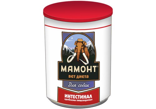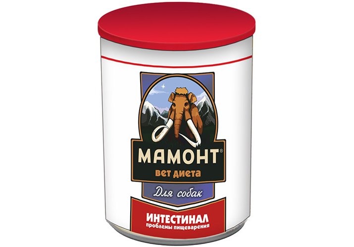 Мамонт VET Intestinal. Влажный диетический корм Мамонт предназначен для собак всех пород и возрастов для профилактики заболеваний желудочно-кишечного тракта, при острой и хронической диарее, пролиферации бактерий в тонком кишечнике, экзокринной недостаточности поджелудочной железы, острых пищевых отравлениях. По ингредиентному составу относится к кормам суперпремиум класса.