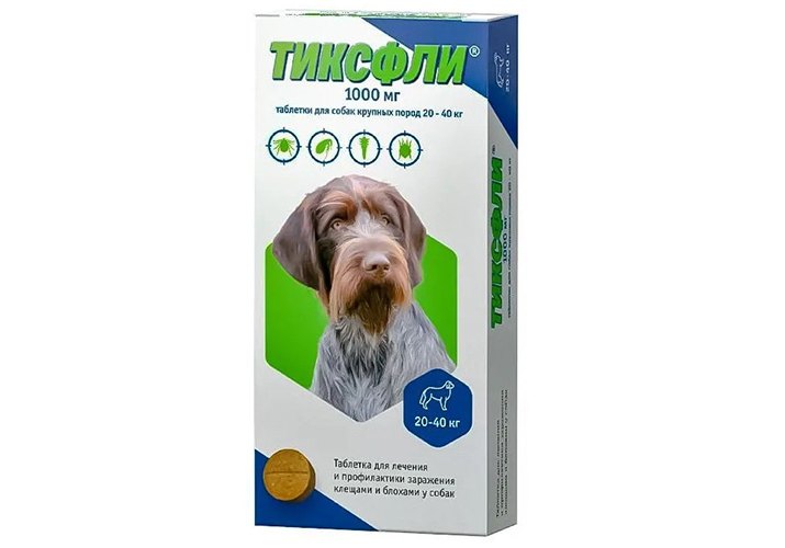 Тиксфли Таблетки от блох и клещей для собак крупных пород 20-40 кг 1000мг 1 таб