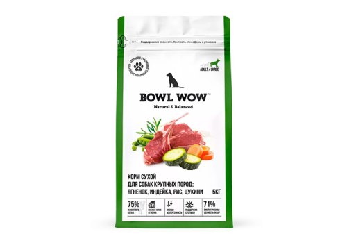 BOWL WOW Adult Large Сухой корм Боул Вау для взрослых собак Крупных пород Ягненок индейка рис цукини 5 кг