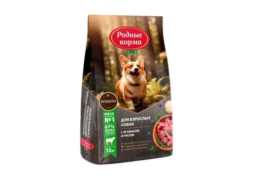 Родные Корма Сухой корм для взрослых собак с Ягненком и рисом 12 кг