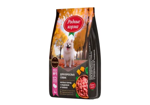 Родные Корма Сухой корм для взрослых собак мелких пород с Индейкой и тыквой 2 кг