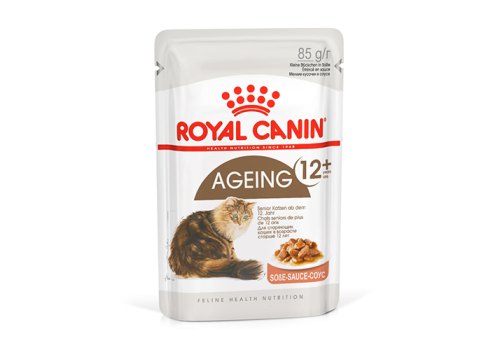 Корм консервированный полнорационный для стареющих кошек в возрасте старше 12 лет AGEING 12+ (ЭЙДЖИНГ 12+) ROYAL CANIN®, мелкие кусочки в соусе, подходящий для стареющих кошек в возрасте старше 12 лет, специально разработан с учетом потребностей вашей кошки в питательных веществах.