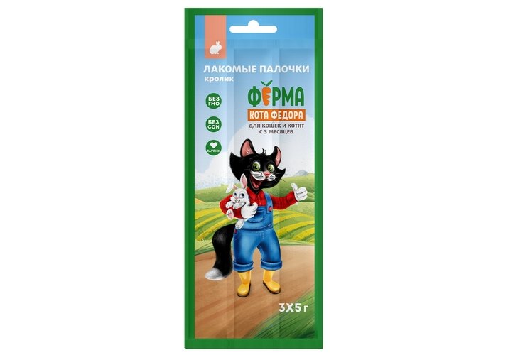 Ферма кота Федора Лакомство для кошек и котят лакомые палочки из кролика 5г х 3шт