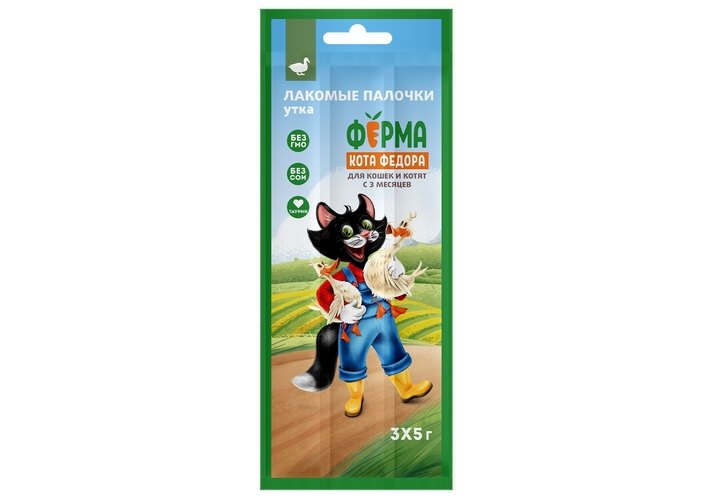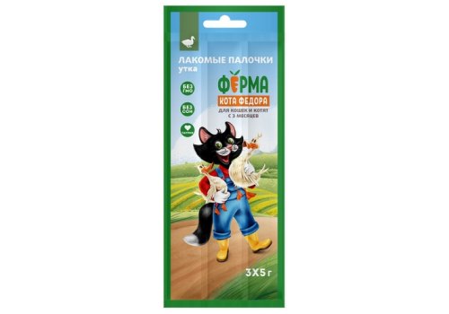 Ферма кота Федора Лакомство для кошек и котят лакомые палочки из утки 5г х 3шт