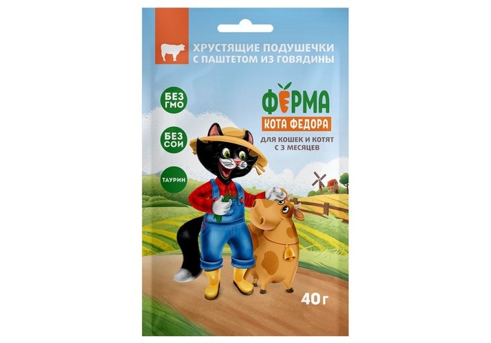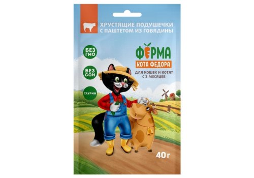 Ферма кота Федора Лакомство для кошек и котят хрустящие подушечки из говядины 40 г