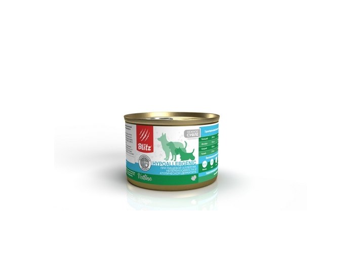 Blitz Dog Vetline Gastrointestinal Консервы Блиц для собак при пищевой аллергии непереносимости и атопическом дерматите (цена за упаковку) 200г х 12шт