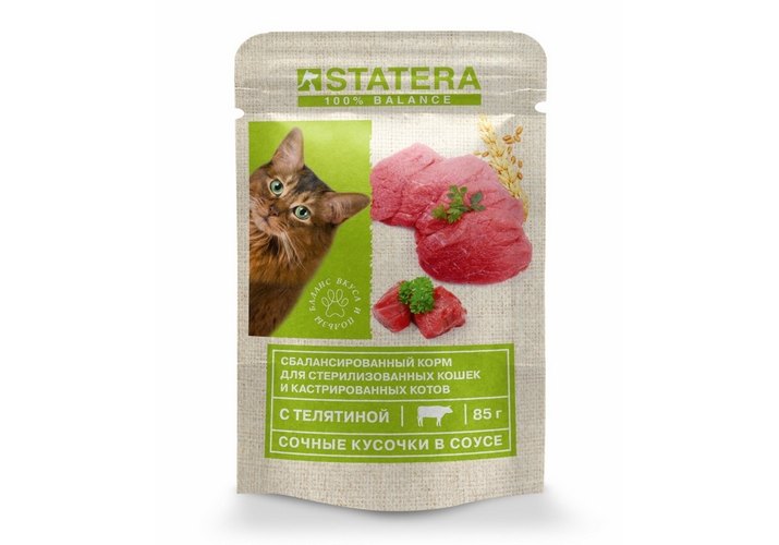 Statera Паучи Статера для Стерилизованных кошек с Телятиной в соусе (цена за упаковку) 85г х 25шт