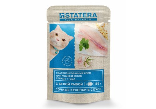 Statera Паучи Статера для взрослых кошек с Белой рыбой в соусе (цена за упаковку) 85г х 25шт