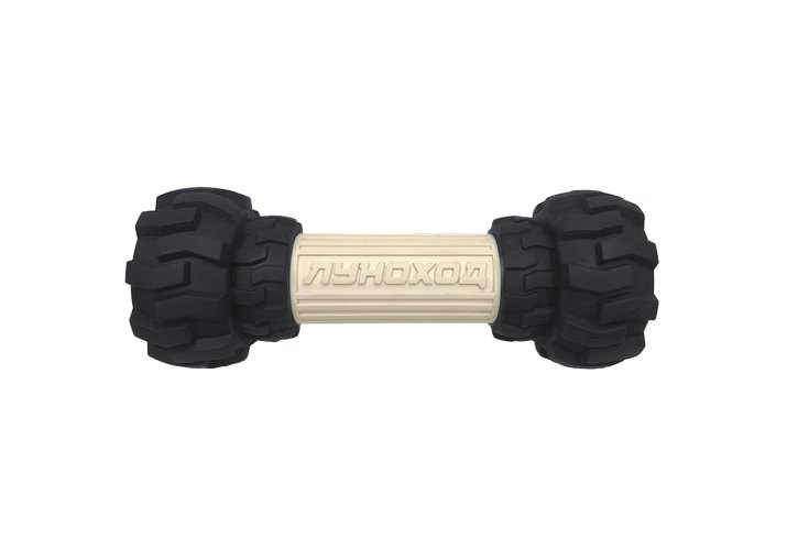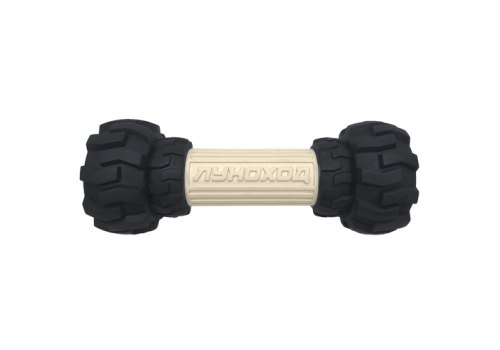 Прочная и тяжелая игрушка-дозатор в форме колесной оси или привычной "гантели" для самых крупных собак. Колеса имеют емкости по бокам, куда можно насыпать кусочки лакомства или наполнить их паштетом и заморозить для более длительного занятия собаки.
